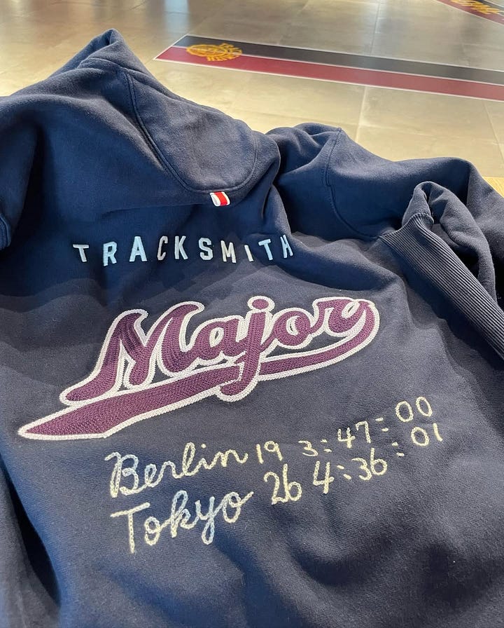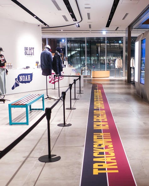 The marathon is one of the few remaining spaces where suffering is genuinely public, and Tracksmith has built an entire aesthetic universe around that insight. Their 2026 Marathon Collection covers Tokyo, Boston and London, each city receiving its own commemorative kit in colourways specific to each race with Tokyo’s nodding to Edo purple and cherry blossom pink launched alongside a Tokyo pop-up with with cult brand Noah, the NY brand that brings counter-cultural credibility to whatever it touches.